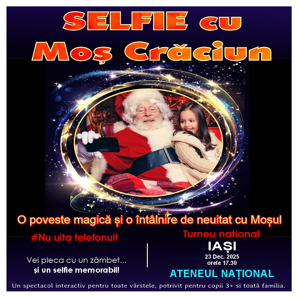 🎄 SPECTACOLUL EVENIMENT “SELFIE CU MOȘ CRĂCIUN” ajunge la ATENEUL NAȚIONAL din IAȘI pe 23 Decembrie 2025, de la ora 17:30! Grupurile scolare vor avea acces prioritar, in baza rezervarilor facute in prealabil.🎅