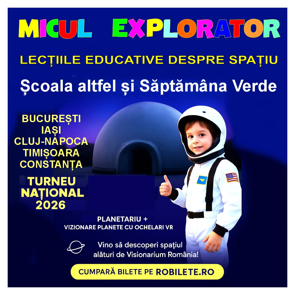 Nu este doar un eveniment. Este o călătorie spectaculoasă prin Univers, cu lecții educative despre spațiu, prezentate într-un mod modern, interactiv și memorabil.